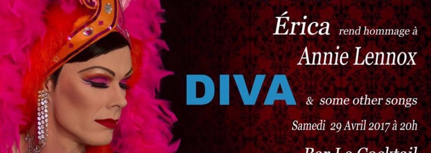 Dans le cadre d’un spectacle intimiste présenté le samedi 29 avril au bar Le Cocktail, Érica s’est livré à un dernier spectacle avant une pause d’une durée indéterminée. Le spectacle était la supplémentaire de Divas and some other songs d’Annie Lennox qu’elle avait présenté une première fois au mois d’octobre dernier au même endroit. En raison de problèmes techniques, le résultat n’était pas aussi concluant que ce qui avait été anticipé. La version présentée hier était celle revue et corrigée. À l’aube de cette pause, Érica m’a permis une incursion dans les coulisses de cette production empreinte de nostalgie et d’émotions. Je vous invite à revivre avec moi ce dernier tour de piste en compagnie d’Érica et de son complice des quinze dernières années, son grand ami Dan.