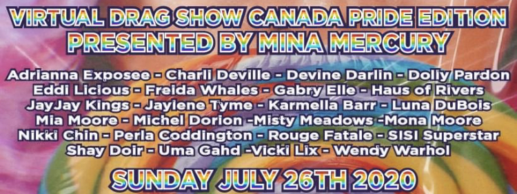 C’est d’ailleurs cette dernière qui a eu l’idée d’offrir et d’animer une édition spéciale Fierté. Cette édition pancanadienne sera présentée le dimanche 26 juillet prochain, à 17h, heure du Pacifique, et 20h, heure de l’Est. Les drags qui y prendront part nous proviennent d’un océan à l’autre, de Victoria en Colombie-Britannique à Saint John’s à Terre-Neuve-et-Labrador. Vous aurez la chance d’y retrouver 25 artistes aux styles variés dont Adrianna Exposee, Charli Deville, Devine Darlin, Dolly Pardon, Eddi Licious, Freida Whales, Gabry Elle, Haus of Rivers, JayJay Kings, Jaylene Tyme, Karmella Barr, Luna DuBois, Mia Moore, Michel Dorion, Misty Meadows, Mona Moore, Nikki Chin, Perla Coddington, Rouge Fatale, SISI Superstar, Shay Doir, Uma Gahd, Vicki Lix et Wendy Warhol.