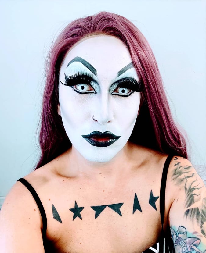 Avant de se lancer dans l’art du drag, elle avait déjà quelques cordes à son arc telles qu’une expérience en théâtre au FX de Garneau ou une passion pour le lip sync qu’elle se plaisait à expérimenter avec ses amis dans son salon durant lors de soirées karaoké. De plus, elle a déjà fait partie d’un groupe de musique industriel. Cela lui a beaucoup inspiré le style gothique de son personnage.