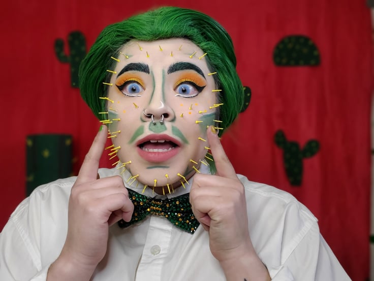 Parmi ses réalisations, il a participé en mai dernier à l’événement Glam Against the machine en faisant une vidéo avec la chanson Trespassing d’Adam Lambert. Aussi, durant son aventure à l’Académie de drag, il a fait une performance, avec un makeup de cactus, pour illustrer la chanson de Jacques Dutronc, Le monde entier est un cactus.