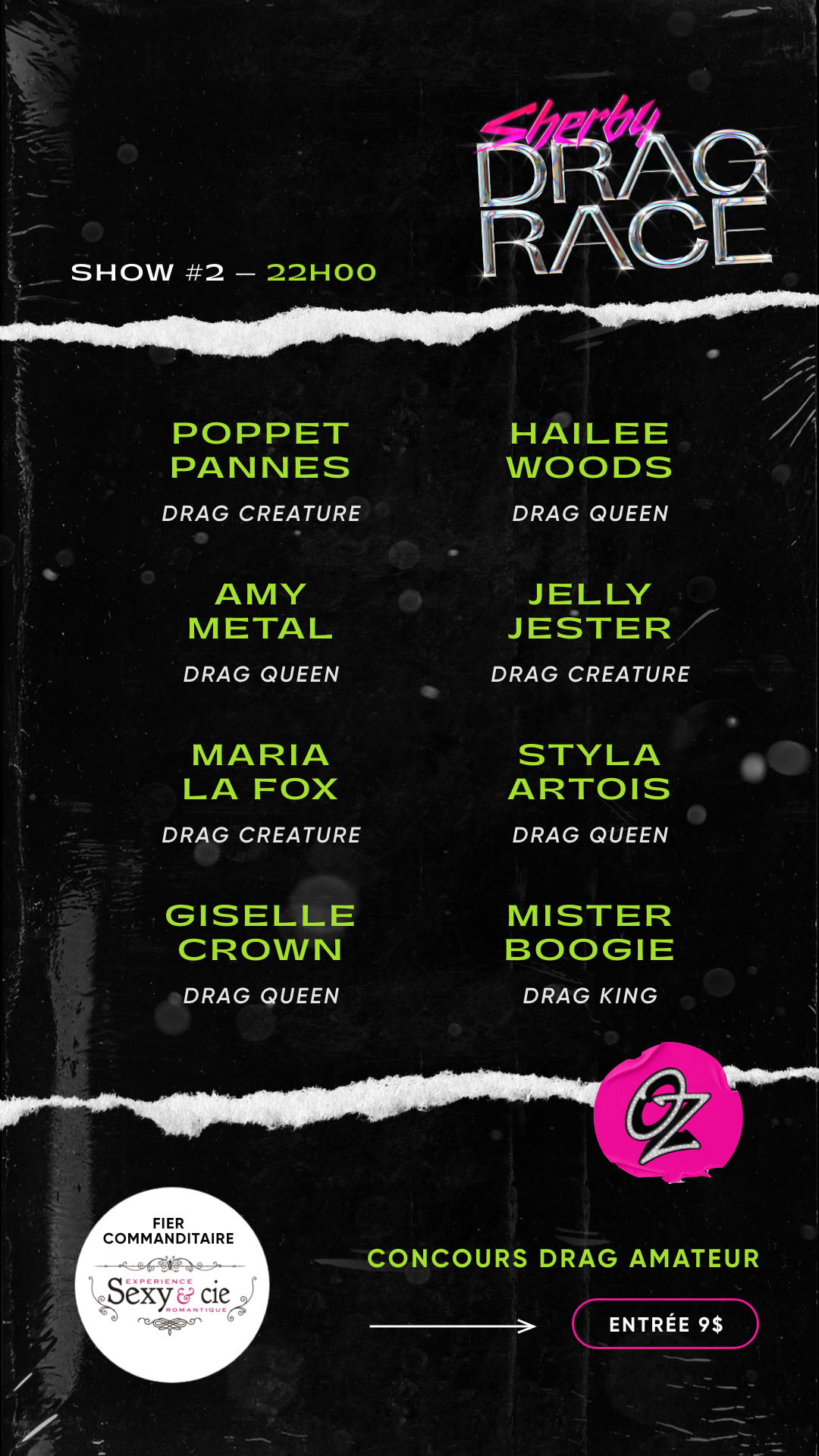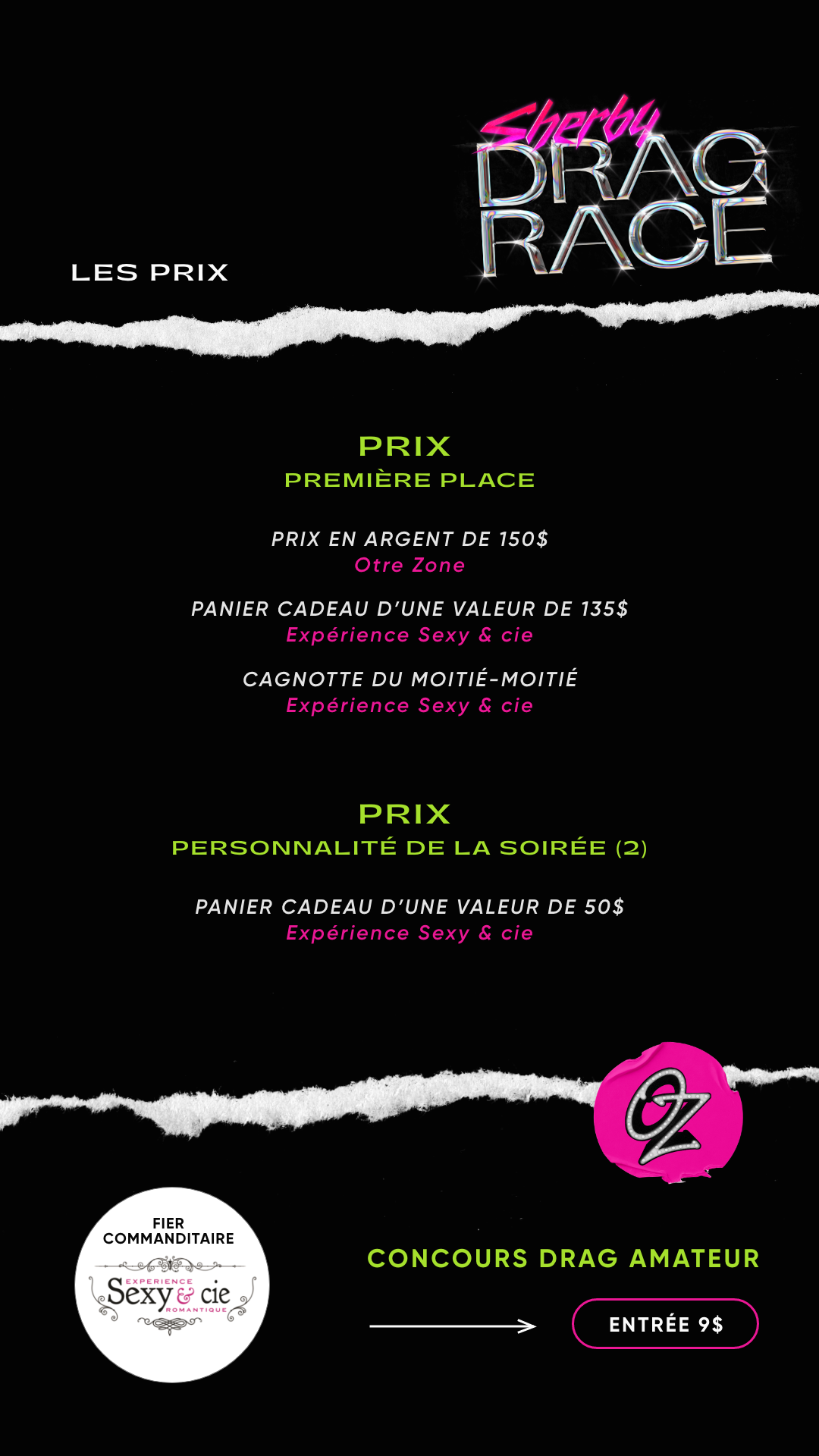 Sherby Drag Race remercient ses commanditaires, le Bar l’Ôtre Zone et la boutique Sexy & Cie pour le lieu et les prix.